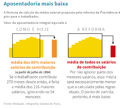 Curioso é que, nas últimas semanas, membros do governo vieram a público dizer que havia ocorrido um erro de interpretação e que, na verdade, continuaria valendo a regra dos 80% maiores salários. Isso acaba de ser desmentido pelo relatório de Arthur Maia. Pode ser que o governo tenha voltado atrás como forma de compensar seus recuos em outros pontos da reforma. (Fonte: Gazeta do Povo)