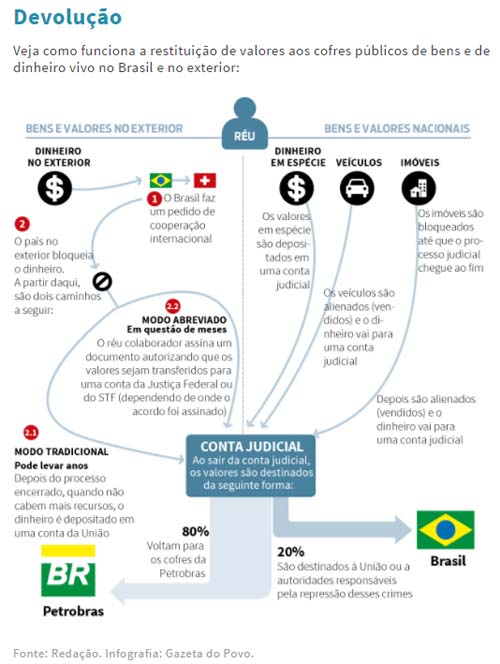 O valor recuperado tem retornado aos poucos aos cofres da Petrobras – principal vítima do esquema de corrupção descoberto pela Polícia Federal e pelo Ministério Público Federal. Desde o início da Lava Jato, a Justiça já autorizou três devoluções de recursos à Petrobras. Veja quem mais devolveu dinheiro até agora: