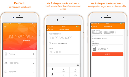 Fundado em março de 2016, o aplicativo, além de facilitar pagamentos e transferências para desbancarizados, ou seja, o cidadão que não tem conta em banco, permite que estabelecimentos comerciais, profissionais autônomos e mesmo usuários comuns se tornem revendedores, realizando recargas e pagamentos para outros usuários. Em troca, a Celcoin paga um bônus, ou comissões.
