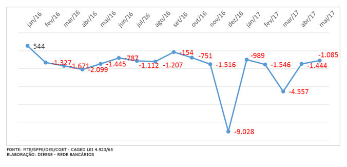 GRÁFICO 1 Saldo do Emprego Bancário Brasil – janeiro/2016 a maio/2017