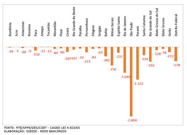 Na segmentação por Setor de Atividade Econômica a análise do Dieese revela que os “bancos múltiplos com carteira comercial”, categoria que engloba bancos como, Itaú Unibanco, Bradesco, Santander e Banco do Brasil, entre outros bancos menores, foi responsável pela maioria dos postos fechados (-4.960 postos ou 51,6% do total). A Caixa Econômica foi responsável pelo fechamento de 4.368 postos (45,4% do total de postos fechados). Esses dados revelam o impacto do Plano de Desligamento Voluntário Extraordinário (PDVE), anunciado pela Caixa Econômica Federal em 7 de janeiro de 2017.
