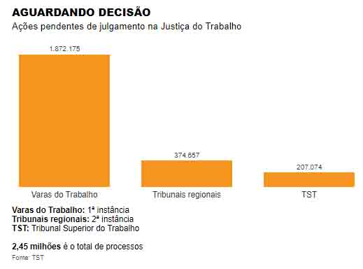 A Justiça do Trabalho tem 2,4 milhões de processos ainda não julgados, dos quais 1,9 milhão estão na primeira instância. As pessoas envolvidas nessas ações dependerão da decisão do juiz para saber se terão custos extras.