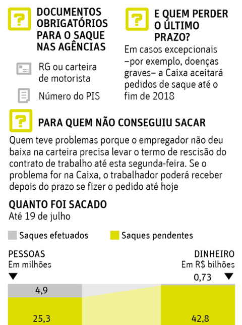 O prazo de 31 de julho teve uma exceção de última hora: o governo permitiu que trabalhadores com doenças graves ou que estão presos e que não puderam ir a uma agência da Caixa no período de 10 a 31 de julho façam o saque até 31 de dezembro de 2018. Porém, nos dois casos, será preciso comprovar a situação com atestado médico ou certidão de prisão.