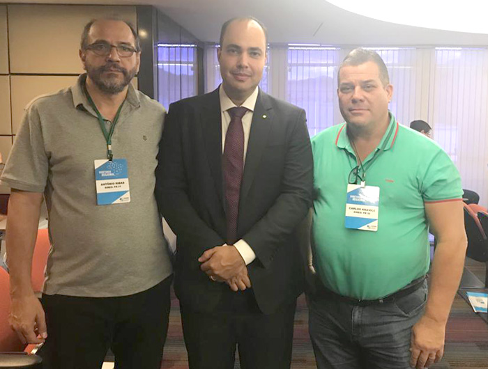 Antonio Ribas Maciel Júnior, Marcelo Lopes Lourenço (gerente executivo Dipes) e Carlos Kravitz, no encontro em Brasília