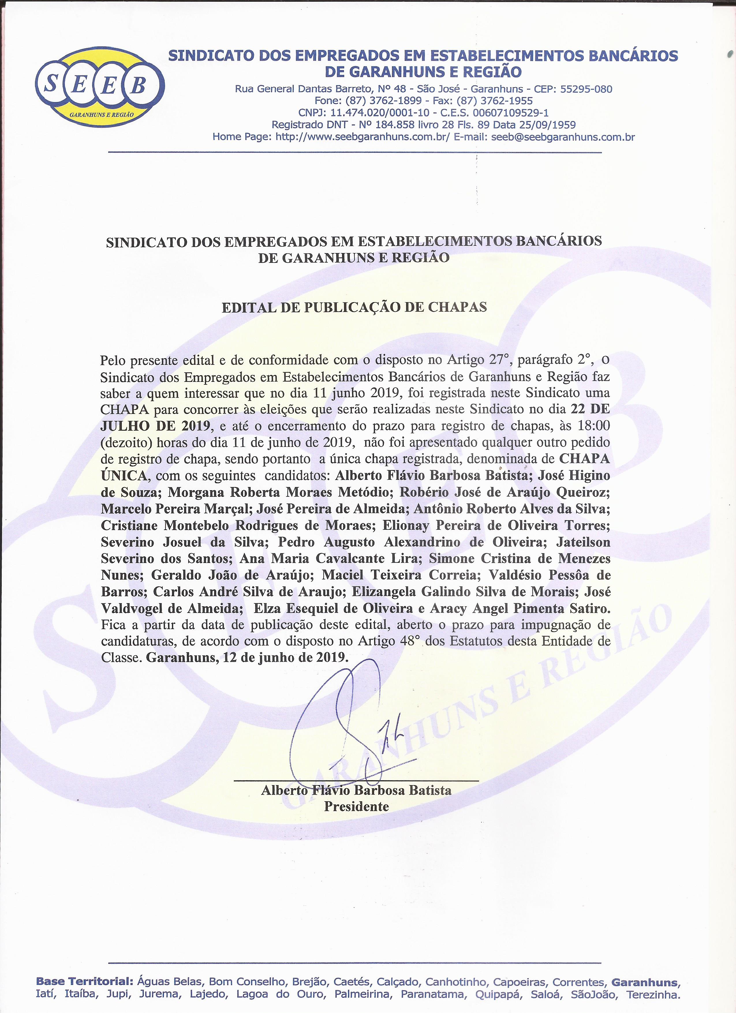 EDITAL DE PUBLICAÇÃO DE CHAPAS