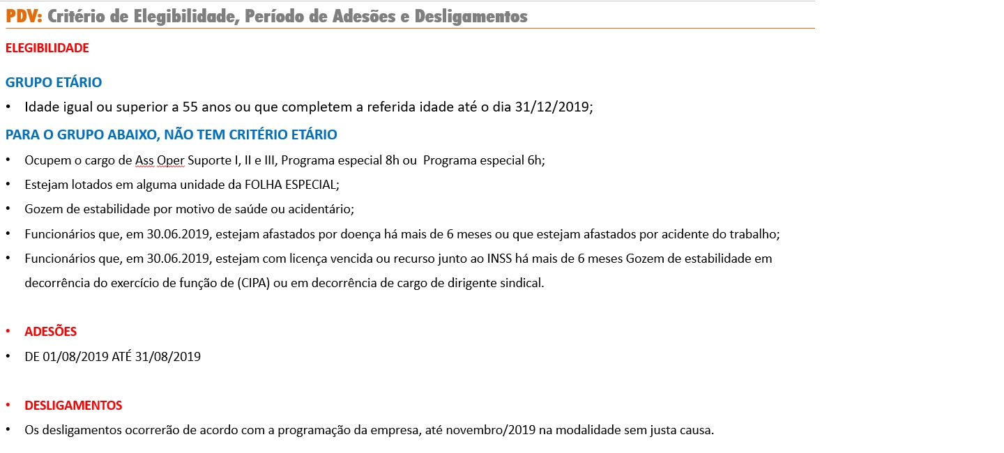 Estamos divulgamento as regras e critérios para adesão ao Plano de Desligamento Voluntário (PDV).