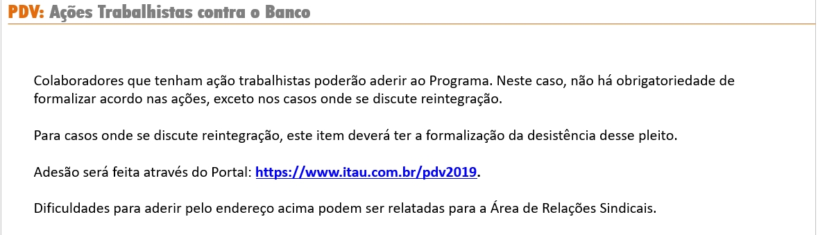 O Itaú Unibanco anunciou nesta segunda-feira (29) o lançamento de um Programa de Desligamento Voluntário (PDV), que terá início no dia 1º de agosto e duração até o dia 31 do mesmo mês.