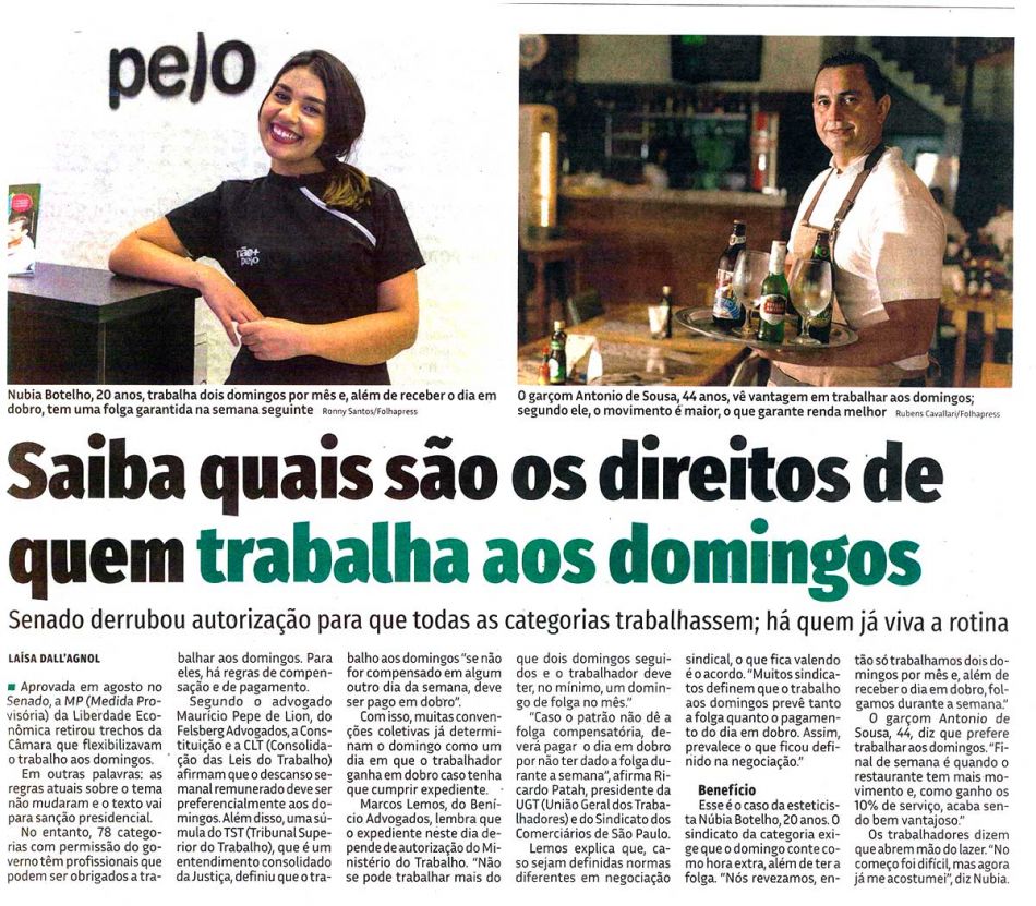 SAIBA QUAIS SÃO OS DIREITOS DE QUEM TRABALHA AOS DOMINGOS