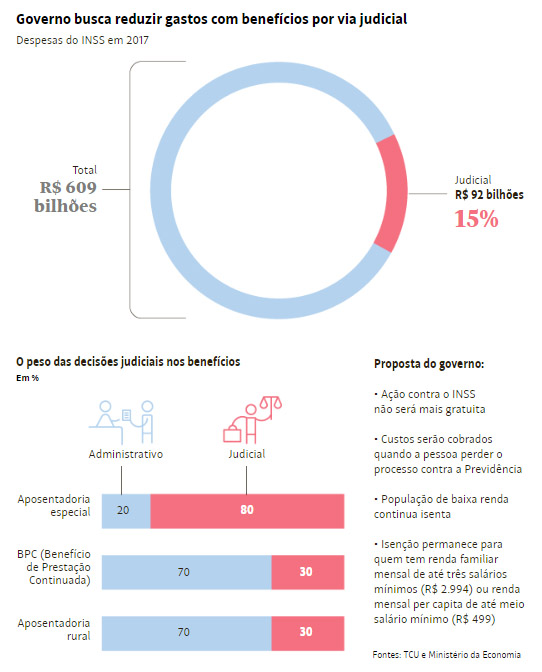 Técnicos da equipe do ministro da Economia, Paulo Guedes, afirmaram à Folha que o objetivo é reduzir a judicialização. Cerca de 15% dos benefícios pagos pelo INSS foram obtidos por via judicial.