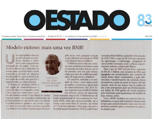 Confira abaixo artigo publicado no jornal O Estado de hoje, sobre o êxito na missão do BNB e a expertise de seus trabalhadores.