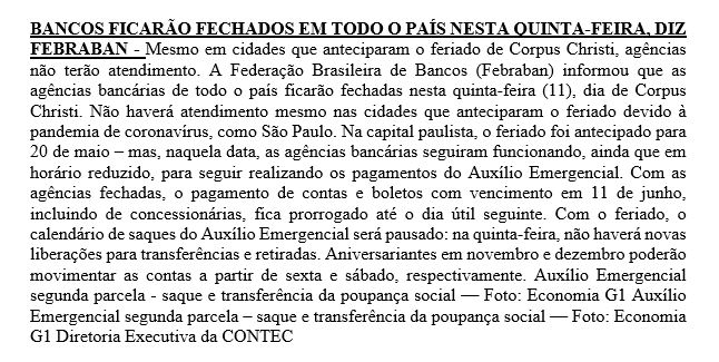 Mesmo em cidades que anteciparam o feriado de Corpus Christi, agências não terão atendimento.