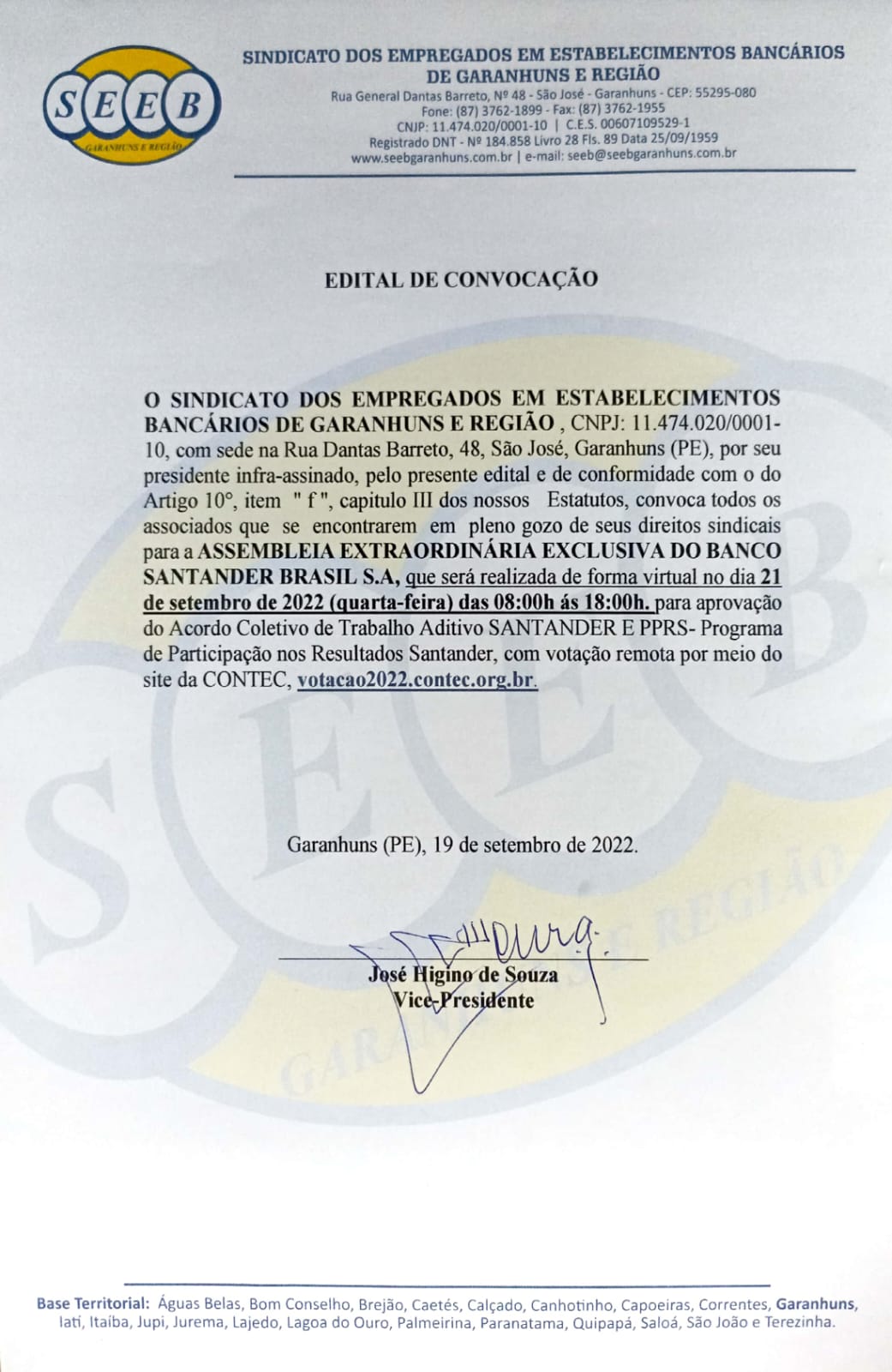 Assembleia Extraordinária Exclusiva do Banco Santander- Edital de Convocação