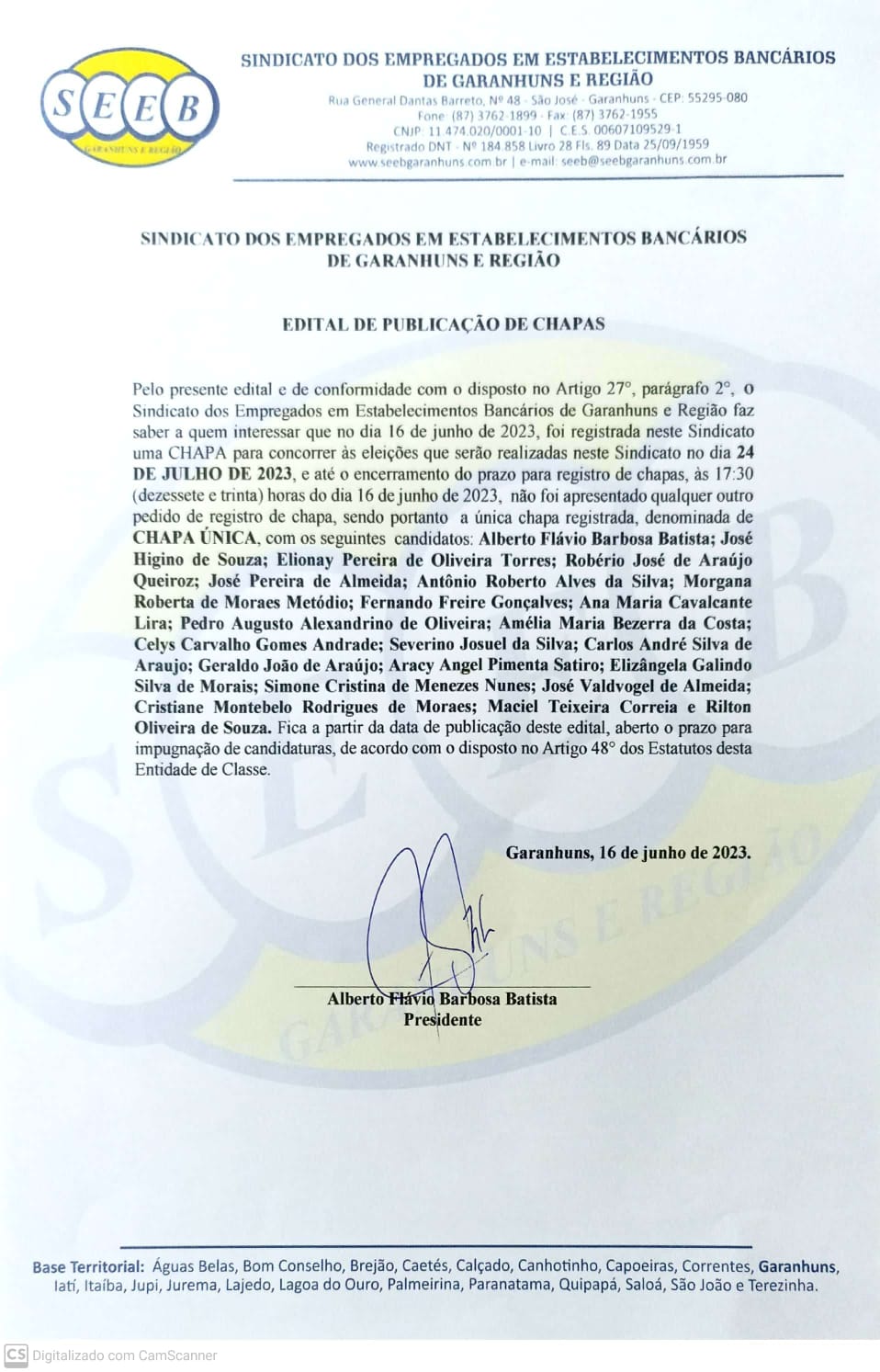 EDITAL DE PUBLICAÇÃO DE CHAPA