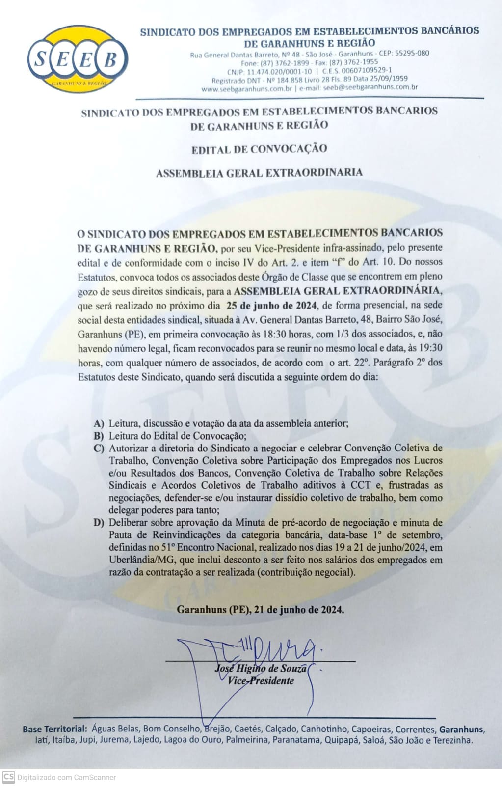 EDITAL DE CONVOCAÇÃO ASSEMBLEIA GERAL EXTRAORDINÁRIA- CAMPANHA SALARIAL