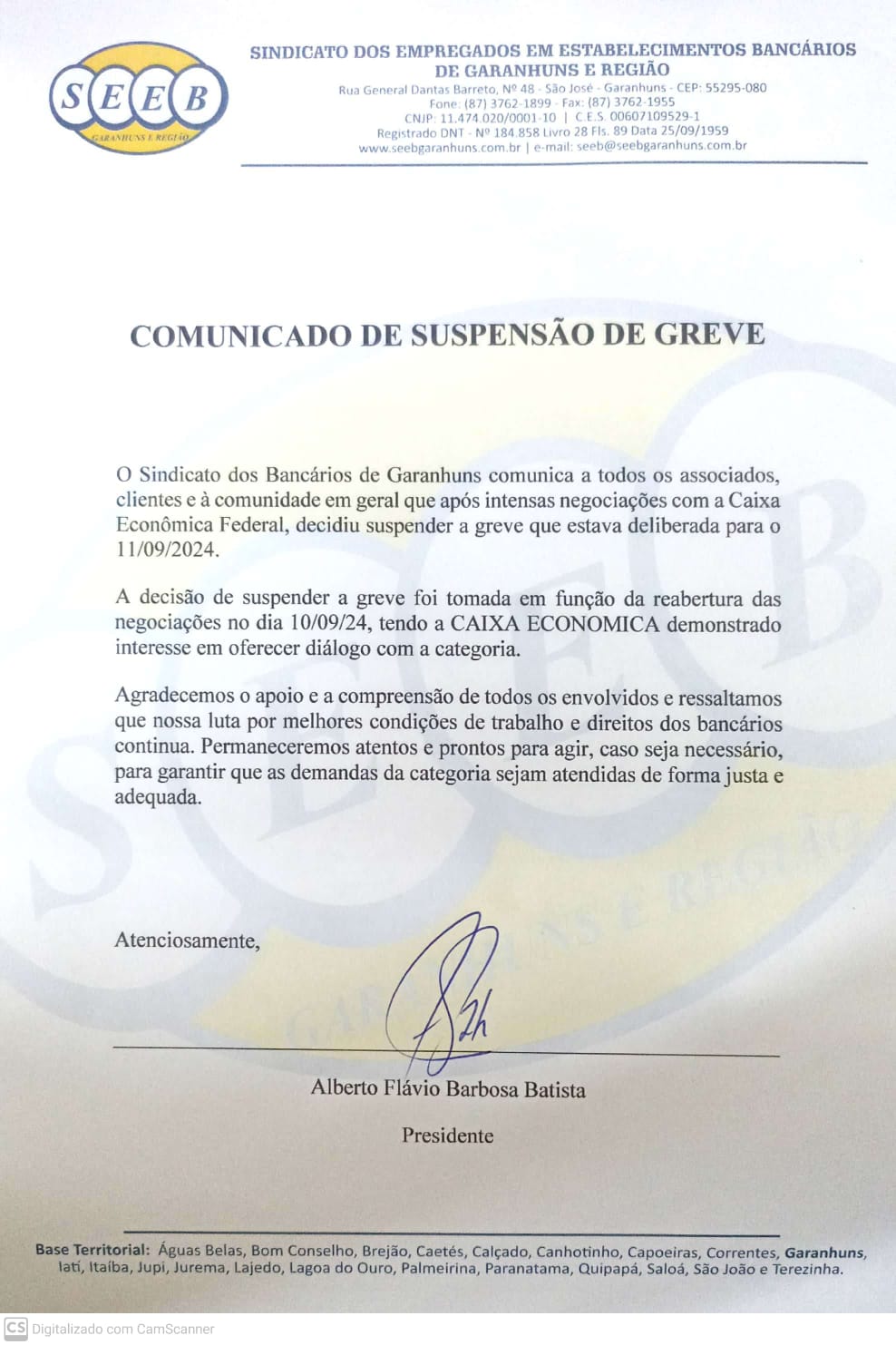 Comunicado de Suspensão de Greve- CAIXA ECONOMICA FEDERAL