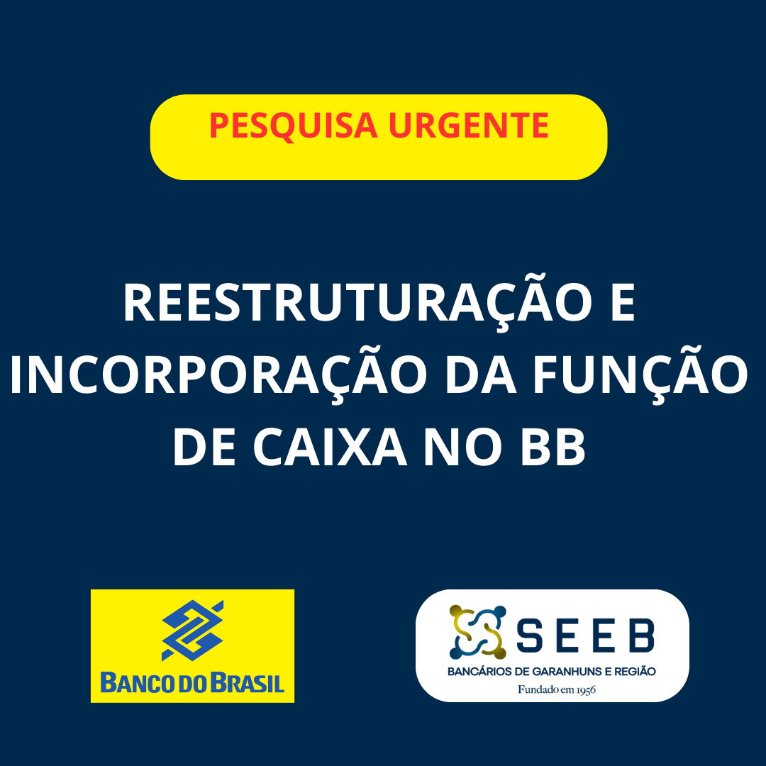 PESQUISA URGENTE: REESTRUTURAÇÃO E INCORPORAÇÃO DA FUNÇÃO DE CAIXA NO BB