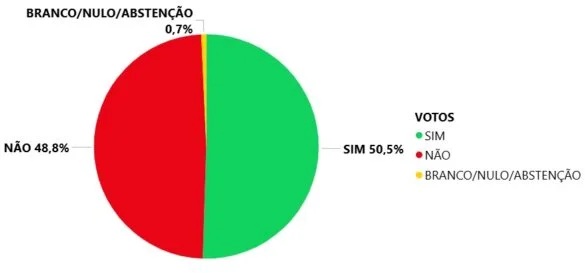 O resultado final apontou 50,5% de votos a favor da proposta, 48,8% contrários e 0,7% de abstenções.