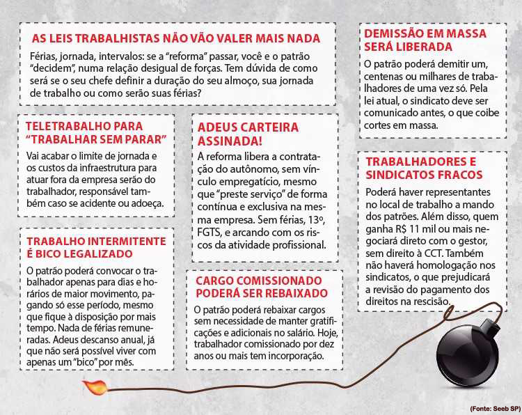 A oposição afirma que a reforma retira direitos dos trabalhadores e vai prejudicar as condições dos empregados. Confira abaixo 12 pontos da reforma trabalhista.