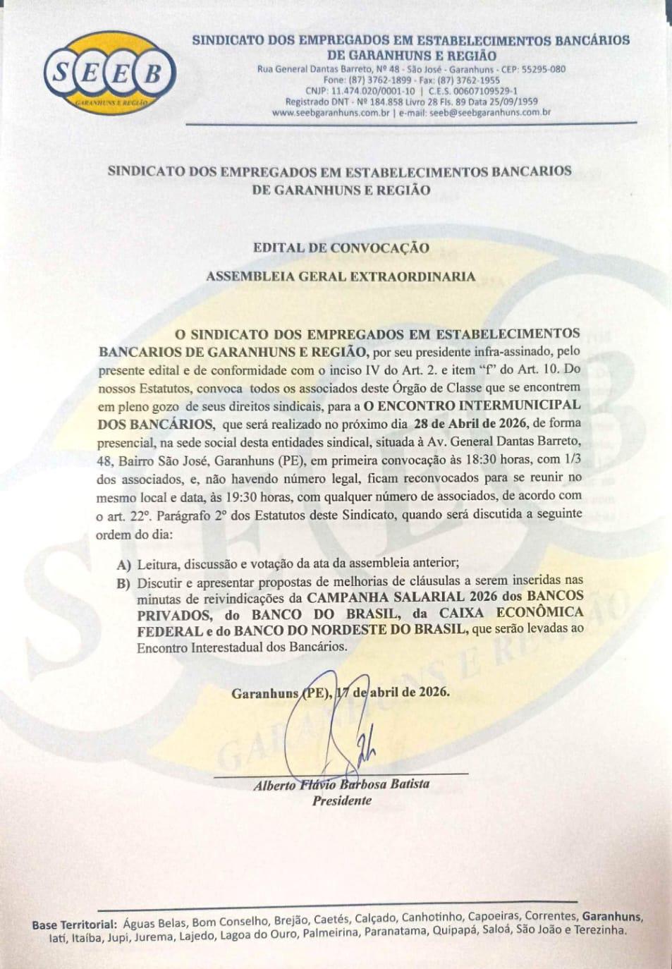 EDITAL DE CONVOCAÇÃO DE ASSEMBLEIA GERAL EXTRAORDINARIA CAMPANHA SALARIAL