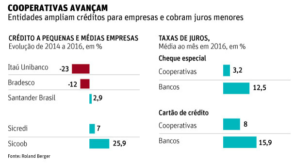 A comparação dos sistemas é parte de um levantamento da consultoria Roland Berger. Os juros cobrados pelos empréstimos a esse público também foram um diferencial entre as cooperativas.