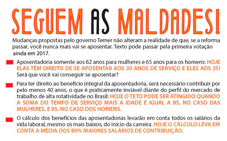 O governo de MichelTemer – que aposentou-se aos 55 anos como procurador do Estado de São Paulo e recebe uma pensão de mais de R$ 20 mil por mês – está empenhado em votar até o fim do ano a reforma da Previdência (Proposta de Emenda Constitucional 287), que irá dificultar o direito à aposentadoria dos brasileiros e rebaixar o valor das pensões.