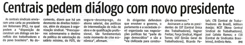 CENTRAIS PEDEM DIÁLOGO COM NOVO PRESIDENTE