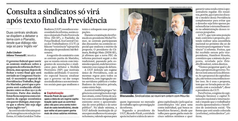 CONSULTA A SINDICATOS SÓ VIRÁ APÓS TEXTO FINAL DA PREVIDÊNCIA