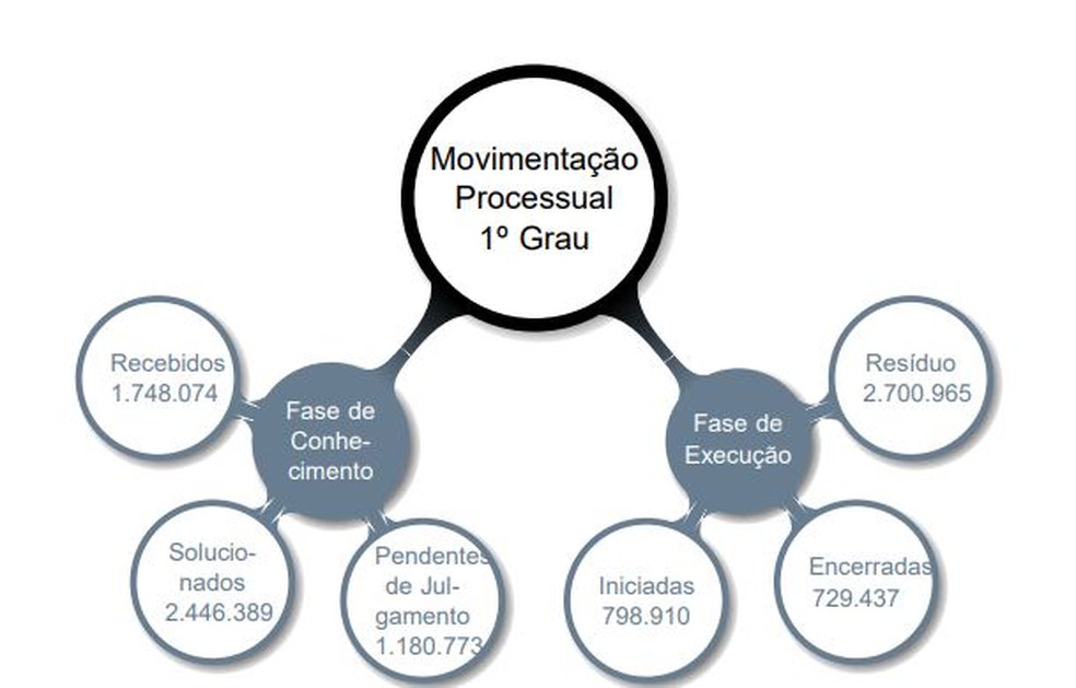 Na fase de execução, foram iniciadas 798,9 mil execuções e encerradas 729,4 mil. Estavam pendentes em 31 de dezembro de 2018, 2,7 milhões de execuções. As iniciadas tiveram uma redução de 5,3%, as encerradas, um aumento de 7,5%. Já as execuções pendentes tiveram um aumento de 0,8% em comparação ao mesmo período do ano anterior.