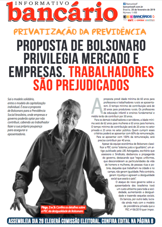 A edição 1.455 do Informativo Bancário traz informações sobre a PEC 6/2019 que pretende privatizar a Previdência Social brasileira. Confira: