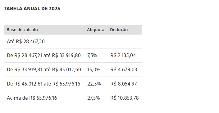 Qual a tabela para declarar o Imposto de Renda?